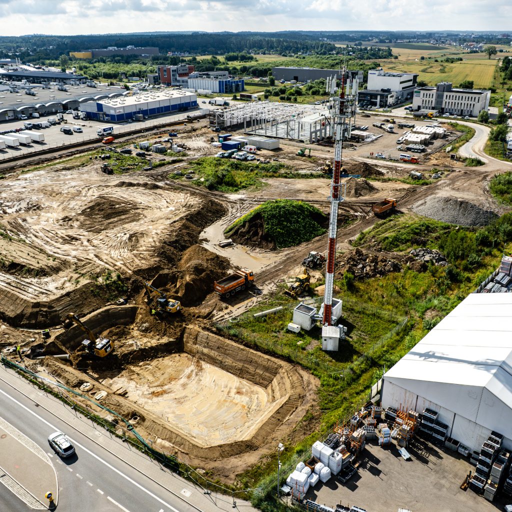Zbiornik retencyjny został zaprojektowany z myślą o obsłudze zrealizowanej inwestycji – hali K1 – oraz przyszłej rozbudowie obejmującej hale K2 i K3. Dzięki temu już na etapie obecnej realizacji zapewniono odpowiednią infrastrukturę dla całego docelowego układu zabudowy.