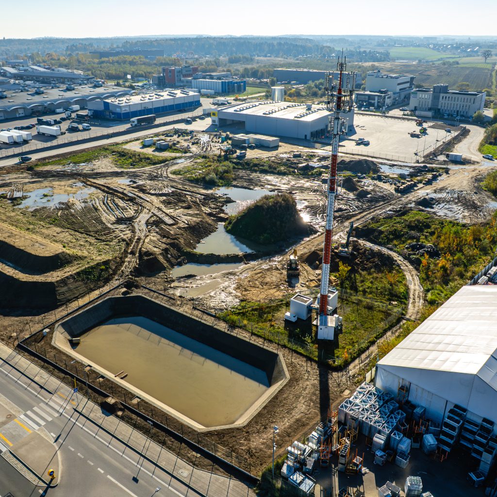 Na terenie Pomorskiego Hurtowego Centrum Rolno-Spożywczego S.A. zrealizowaliśmy ważną inwestycję wspierającą ochronę środowiska oraz bezpieczeństwo infrastruktury – budowę nowoczesnego zbiornika retencyjnego wraz z infrastrukturą towarzyszącą.